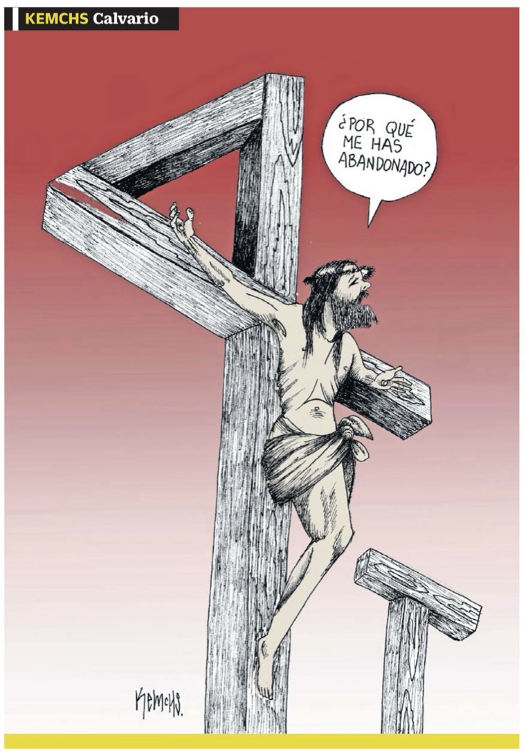 Siempre he respetado la libertad de expresión, pero en esta ocasión considero pésimo y una falta de respeto al Cristianismo el usar la imagen de Jesucristo en la cruz con un tema político. Repruebo el cartón de Kemchs en El Universal.