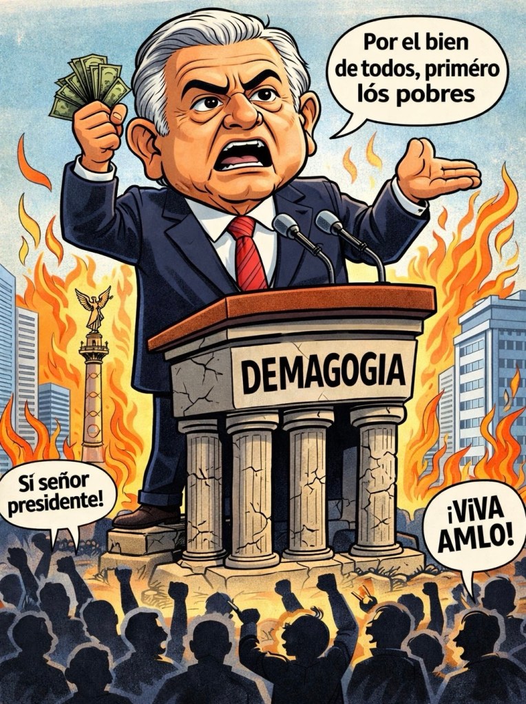 La demagogia es una práctica política que busca ganar el apoyo popular mediante halagos, falsas promesas y la manipulación de emociones, prejuicios y temores de los ciudadanos, en lugar de utilizar argumentos racionales o soluciones viables. Se considera una degeneración de la democracia donde el líder dice lo que la gente quiere oír para obtener o mantener el poder. Bajo esa prisma, el estilo de AMLO encajó con precisión, y sin duda puede ser considerado un demagogo.